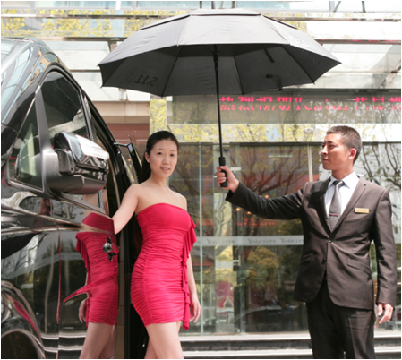 当我来到艺星下车的那一刻,英俊的保安非常绅士地为我开门撑伞遮阳
